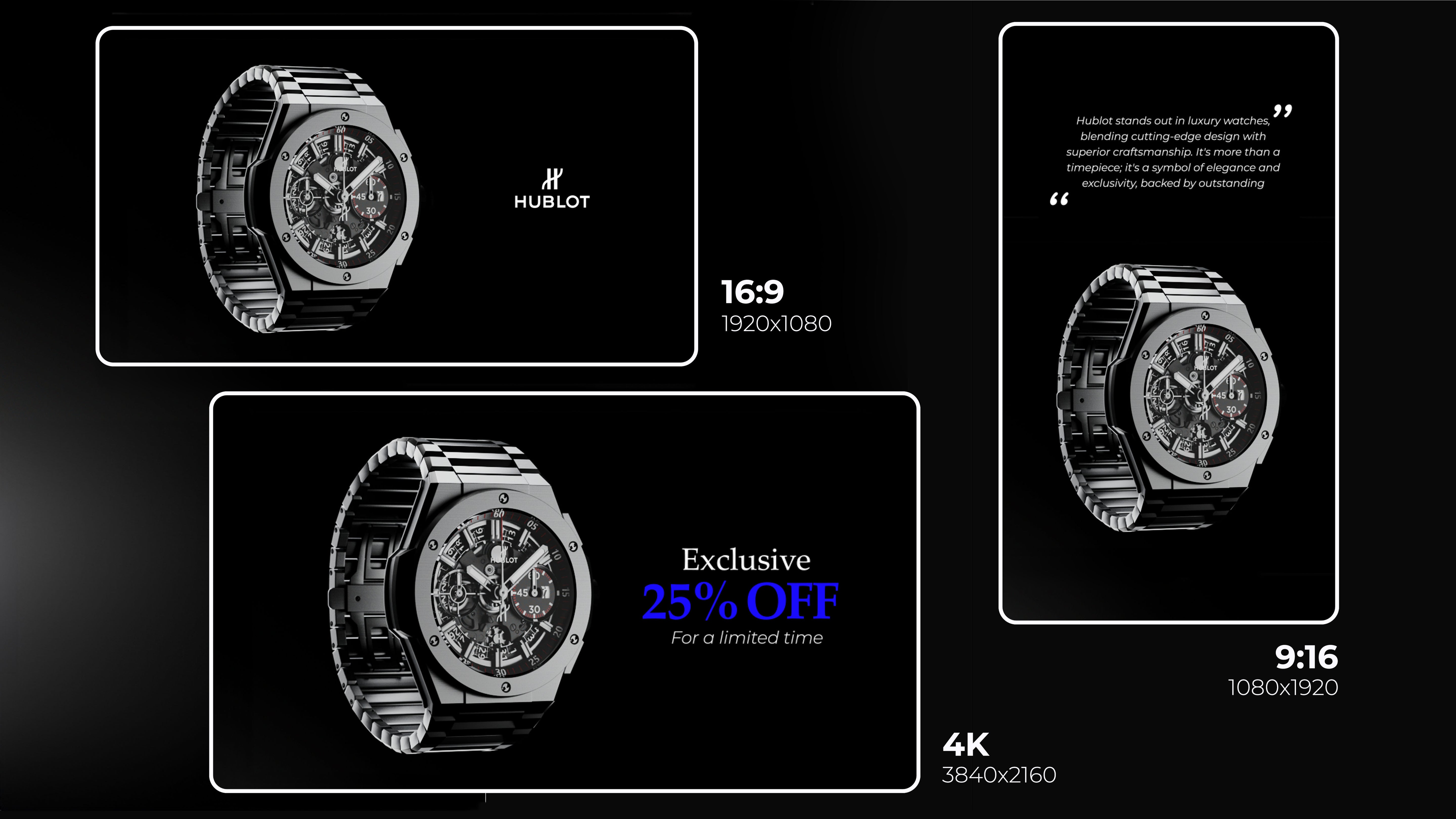 Motion Factory's distinct business model revolves around template-based creations. Our team has developed sophisticated tools that enable us to seamlessly swap out the hero product in our animations with that of our client's.