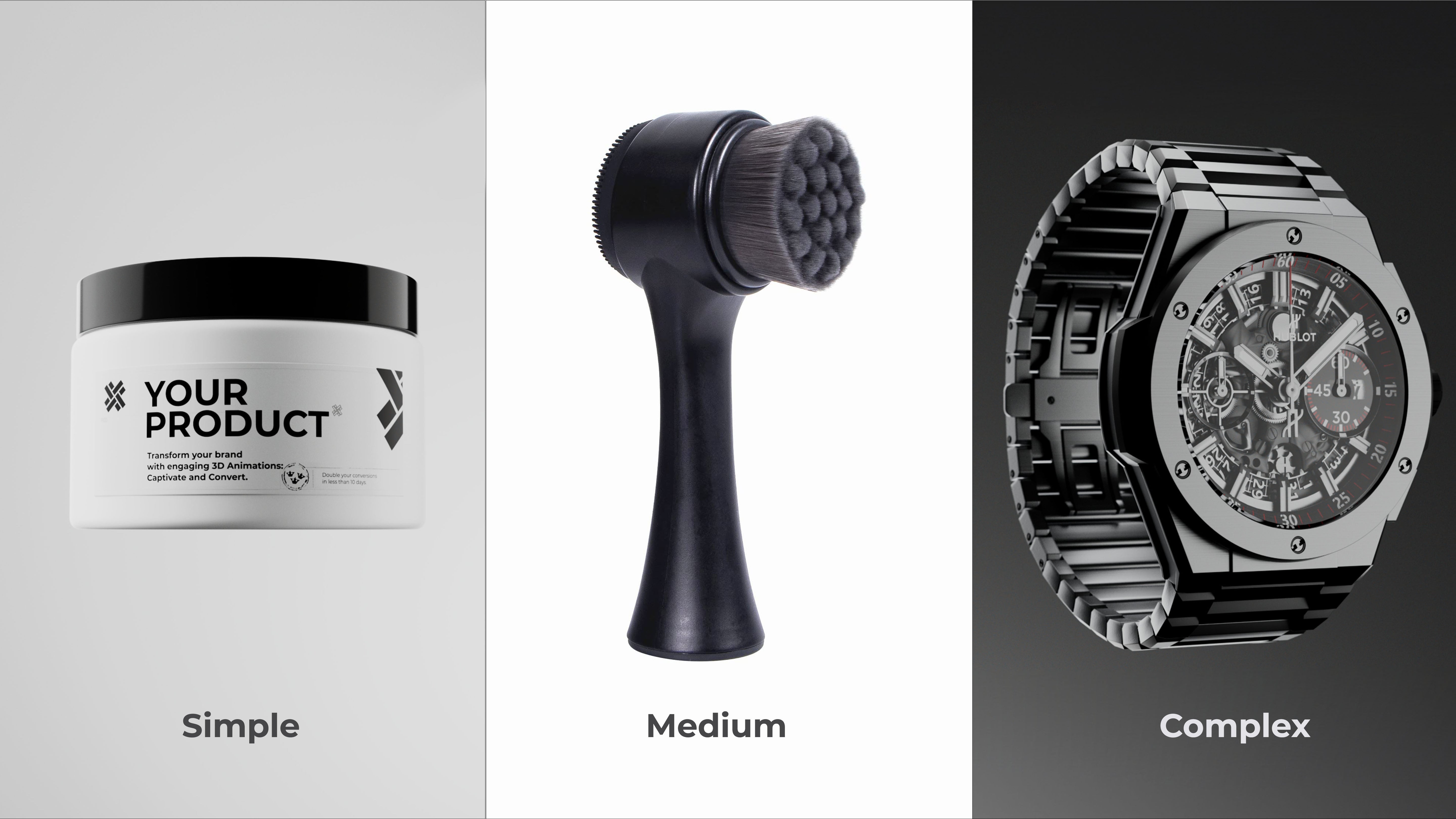 If your product has a medium level of complexity and consists of fewer than 8 separate pieces to be modeled, such as glasses, helmets, some jewelry, handbags, or furniture products,there will be an additional cost of $600 to model your product.